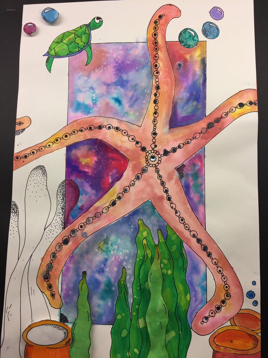 Beyond The Boarder Art Lesson Create Art With Me High School Art Projects School Art Projects Beyond The Border Deep Sea Rendezvous Amber M Moran High School.